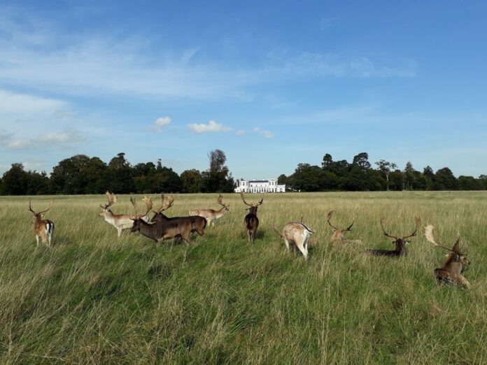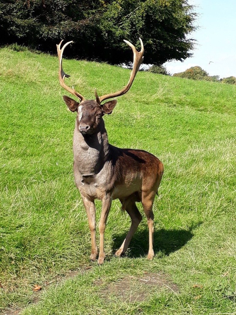 Si vous avez la chance d’avoir un jour de beau temps (ce qui n’est pas gagné, croyez-moi !), faites donc un tour par Phoenix Park, à l’ouest de la ville, tout près du centre. De l’autre côté de la rivière par rapport à Heuston Station, l’entrée fait penser à un espace vert comme un autre, avec cyclistes, piétons, poussettes et personnes sur skates ou rollers. Il faut marcher quelques minutes pour commencer à apprécier l’immersion, les chemins longeant petits étangs, parterres de fleurs et autres étendues d’herbes. Et, sans vous y attendre, vous n’êtes plus dans Dublin. Plaines verdoyantes à perte de vue, forêts épaisses, ruisseaux… Pas un bruit de ville, les voitures, tramways et trains sont loin derrière vous. Plus vous vous enfoncez dans le parc, plus vous vous sentez comme à la campagne. Il ne manque plus qu’une chose : croiser un daim sauvage au détour d’un chemin ! Cela n’a rien de rare dans ce parc, c’est même tout à fait courant, tant et si bien que les daims sont habitués aux humains et ne sont pas farouches du tout ! Voyez par vous-mêmes à quel point j’ai pu approcher celui-là, qui, en réalité, est venu à ma rencontre :