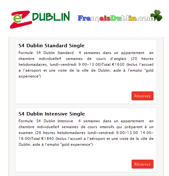 Avec cet article, nous te présentons l’offre intéressante de EazyDublin, l’organisme d’accueil basé dans le centre-ville de Dublin qui te propose des forfaits adaptés à tous les niveaux anglais et aux différents niveaux d’assistance requis. Voici un exemple: