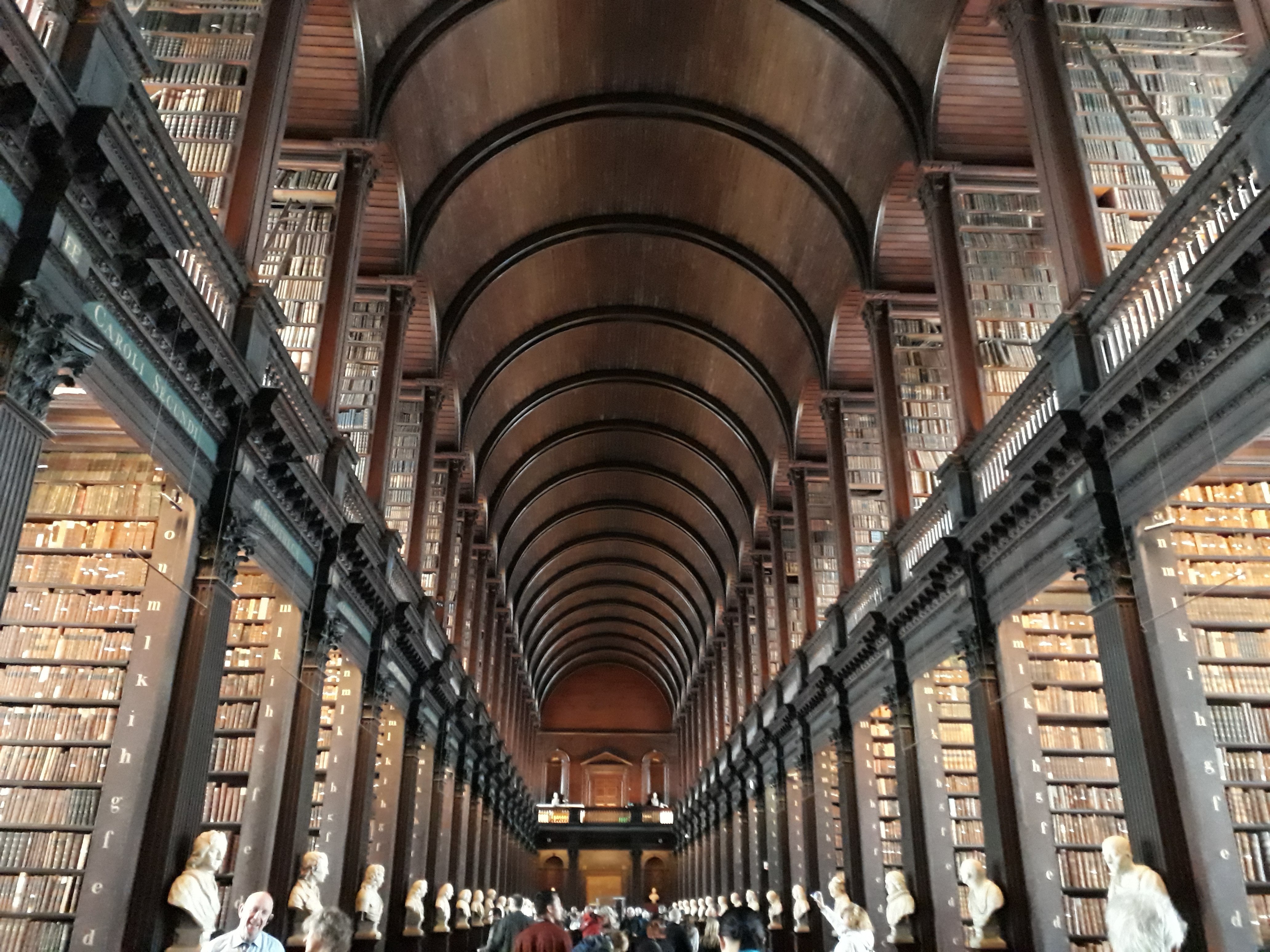 Ceux qui sont passionnés de vieux livres et d’intérieurs à la Poudlard, continueront tout droit, prendront la première à droite et arriveront directement à la Vieille Bibliothèque renfermant le fameux « Book of Kells ». Les tarifs varieront selon votre statut, et malheureusement, selon les heures de la journée la queue sera plus ou moins longue… Evitez paradoxalement le matin, favori des touristes, et privilégiez le début d’après-midi ou l’heure du déjeuner. Si vous le pouvez, réservez sur internet, afin d’être sûr d’avoir une place ! L’astuce à connaître pour les étudiants de l’université, mais également pour ceux qui aimerait visiter gratuitement et rapidement : les élèves de Trinity ont l’entrée gratuite, accompagné de deux ou trois personnes extérieures maximum en même temps. Si l’élève en question se débrouille bien, il peut même couper la file avec sa carte étudiante. Il n’y a plus qu’à vous acoquiner avec un(e) étudiant(e) bienveillant(e) !