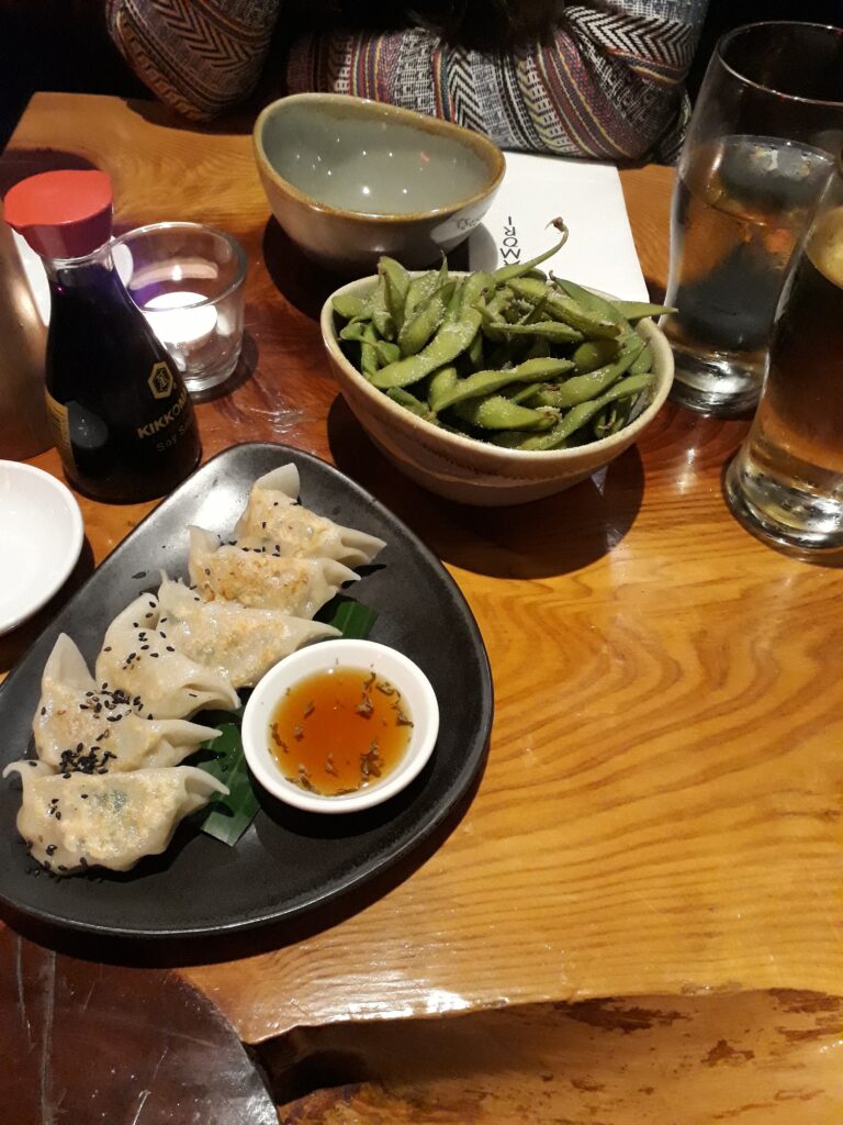 3. Manger sur place en choisissant au menu, beaucoup plus cher, mais une meilleure qualité- Yamamori (trois adresses, une spécialisée dans les sushis, une dans les noodles, et la troisième dans les tapas japonais). Je recommande cette adresse pour y avoir été, mais c’est relativement cher. Pour une trentaine d’euros par personne, voilà ce que nous avons mangé à deux, le tout accompagné d’une pinte de cidre par personne :