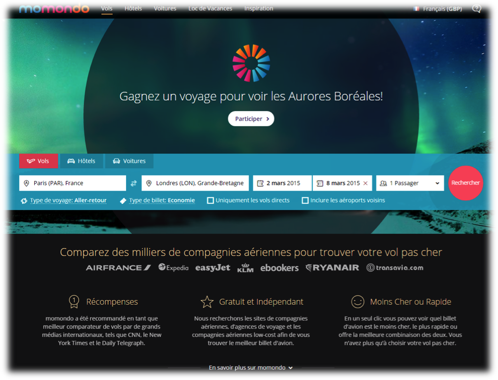 Effectivement, momondo est un site de voyage en ligne qui vous permet de comparer très rapidement les billets d’avion et les offres de voyages grâce à une liste non manipulée sur laquelle vous pouvez réserver votre vol grâce à Vision Vol,