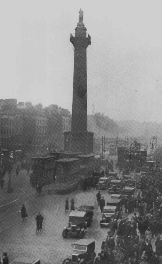 Nelson Pillar » (le pilier de Nelson), une colonne de granit de 37 mètres de haut au sommet de laquelle se dressait une statue colossale (4m) de l’amiral Horatio Nelson.