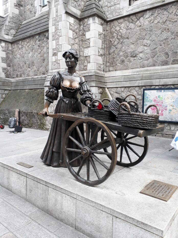 En sortant du parc, si vous continuez vers le nord vous tomberez sur l’arrière du campus de Trinity College que, si vous n’avez pas encore eu l’occasion de visiter, vaut le coup. Ouvert au public, sa traversée est très agréable et vous permet de vous rendre rapidement de Pearse Street à College Green. Une fois à l’extrémité ouest du campus, vous pouvez voir à votre droite le bâtiment de la banque d’Irlande (si les travaux sont terminés), dans un style qui ressemble très fortement à celui du bâtiment d’entrée de Trinity College. Continuez tout droit et prenez la première à gauche pour tomber sur la statue de la célèbre prostituée irlandaise, Molly Malone. La légende dit que si vous la touchez, cela vous portera chance… On se demande pourquoi certains endroits de son corps semblent plus brillants que les autres !