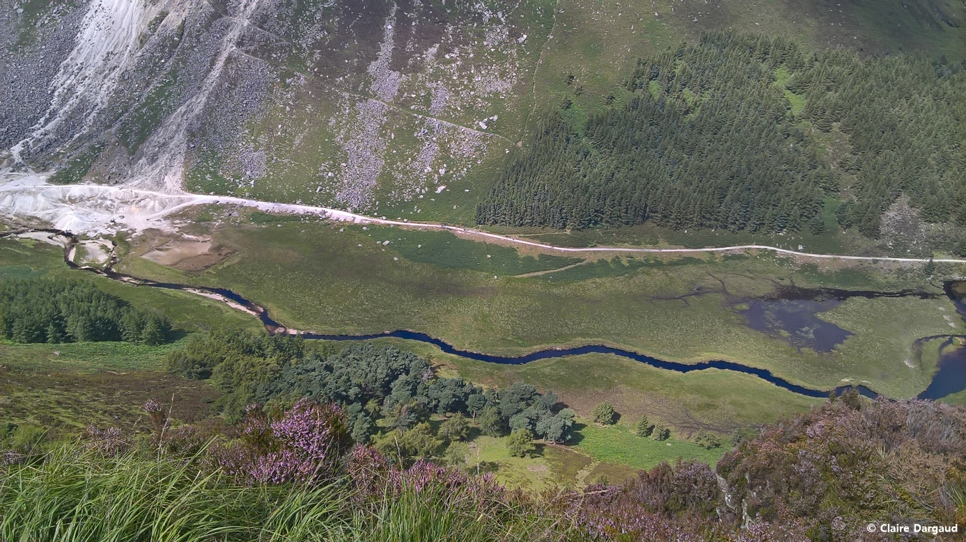 Pour les randonneurs plus aguerris, vous pouvez emprunter le sentier rouge. Celui-ci emprunte une partie de la Wicklow Way et du Spinc (chemin bleu). C’est de loin la balade la plus spectaculaire autour de Glendalough. Il faut compter 11 km de marche (soit 4h) pour admirer, si le temps est clément, un paysage à 360°C du Parc National des Wicklow Mountains. La montée vaut la peine : on surplombe toute la région et il est possible d’apercevoir la mer au loin.
