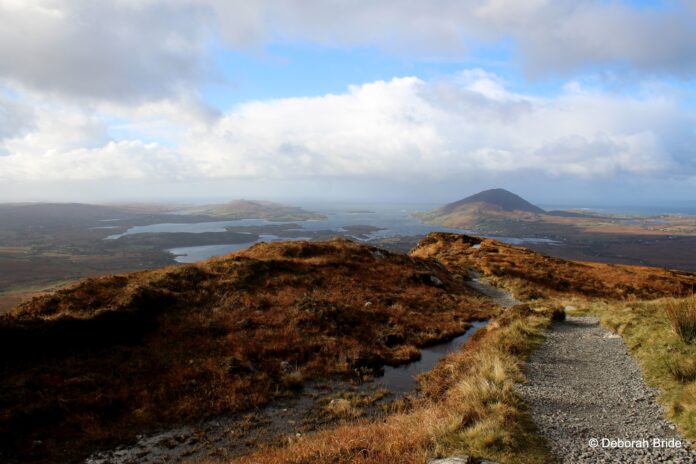 Mais nous avons aussi fait le Diamond Hill (Vous vous souvenez que je ne suis pas une grande amatrice de randonnée ? Ça s’était une vraie randonnée!!), qui est une montagne qui surplombe une partie du parc du Connemara. Je dirais que la montée n’est pas « si difficile que ça », compte tenu de mon absence d’endurance, je suis toujours vivante pour vous en parler, donc c’est largement faisable !! Et les différents points de vues qu’offre la balade valent le coup ! Mais n’oubliez pas un coupe-vent imperméable, car la pluie est si vite arrivée sur cette partie de l’Irlande, que vous ne voudriez pas finir trempés à mi-chemin !